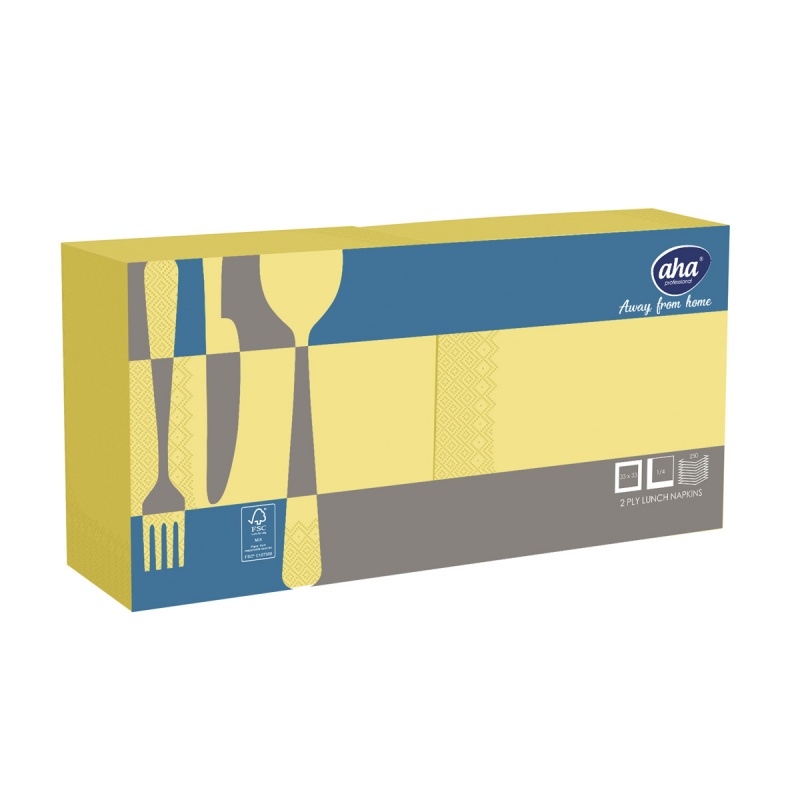 Serwetki AFH AHA, 2-warstwowe, składanie 1/4, 33x33cm, 250 szt., pastelowo żółte