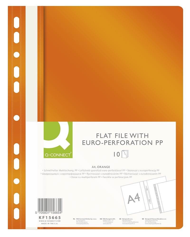 Skoroszyt Q-CONNECT, PP, A4, standard, 120/170mikr., wpinany, pomarańczowy