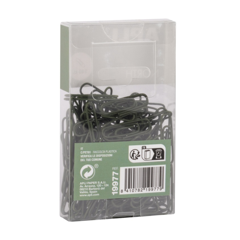 Spinacze okrągłe APLI Up North, 28mm, 140szt., pudełko z zawieszką, khaki
