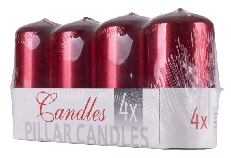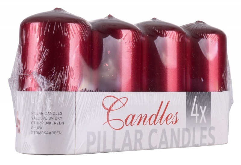 Świeca słupek DONAU HOME Standard Lakier, 50x100mm, 4 szt., czerwony metaliczny połysk
