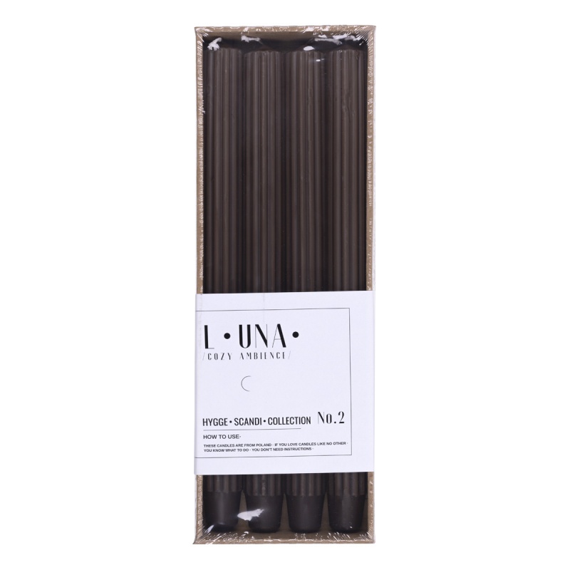 Świeca stołowa długa ryflowana DONAU HOME, 25×300 mm, 4 szt., brązowa