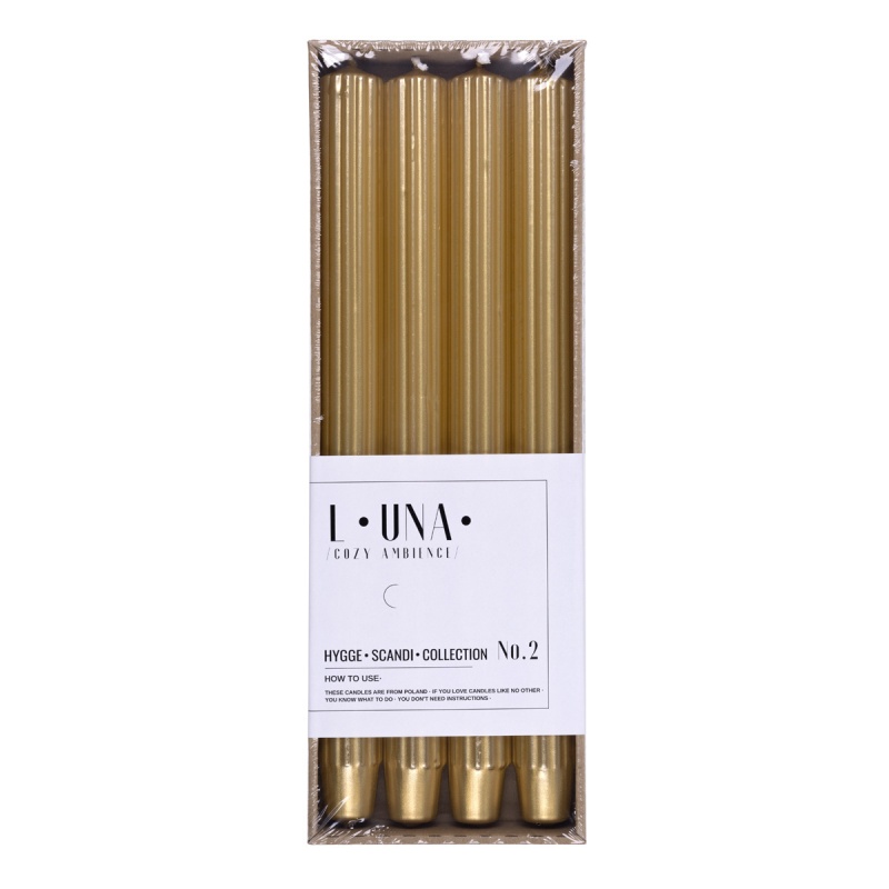 Świeca stołowa długa ryflowana DONAU HOME, lakierowana, 25×300 mm, 4 szt., złota