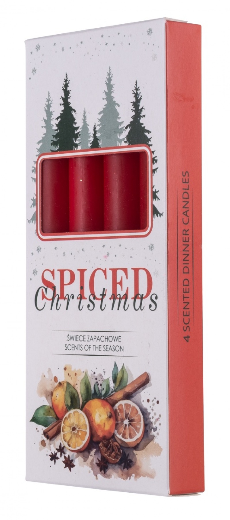 Świeca stołowa DONAU HOME Spiced Christmas, 20x170mm, 4 szt., pomarańcza z goździkami, czerwony