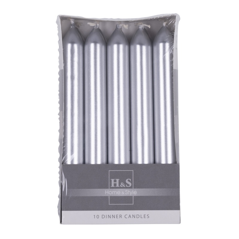 Świeca stołowa prosta DONAU HOME, lakierowana, 20×170 mm, 10 szt., srebrna