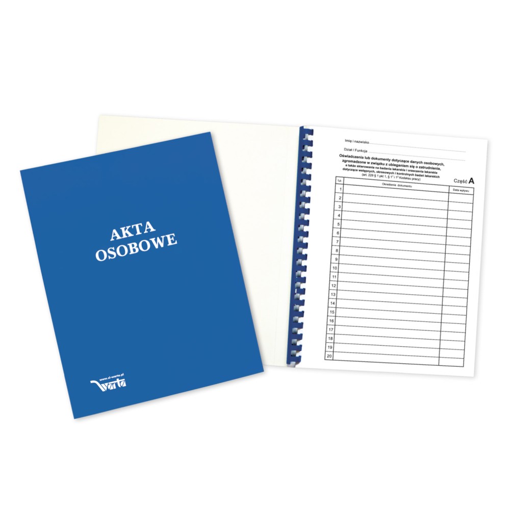 Teczka Akt Osobowych ABCDE, binda wewnętrzna, z treścią niebieska