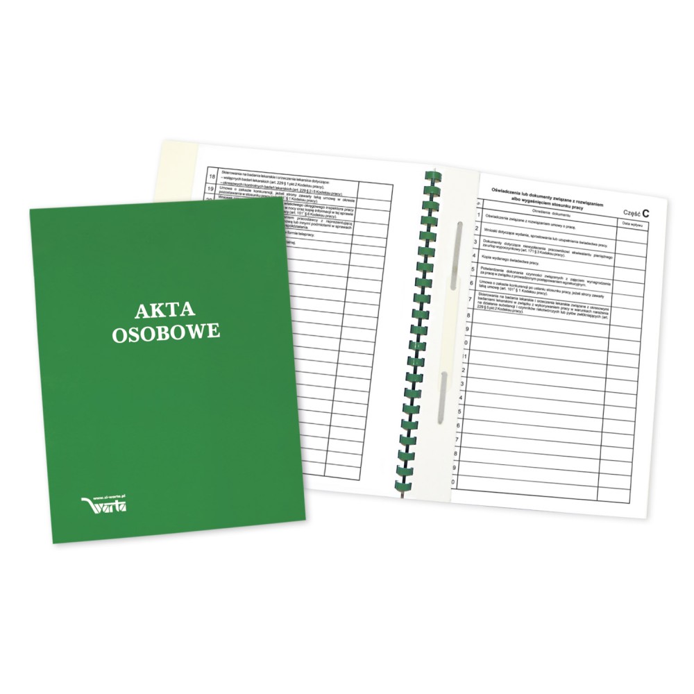 Teczka Akt Osobowych ABCDE, binda wewnętrzna, z treścią zielona