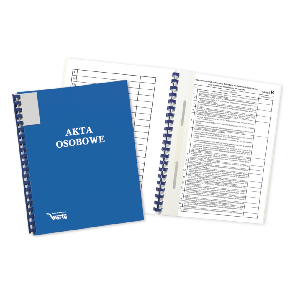 Teczka Akt Osobowych ABCDE, binda zewnętrzna, z treścią niebieska