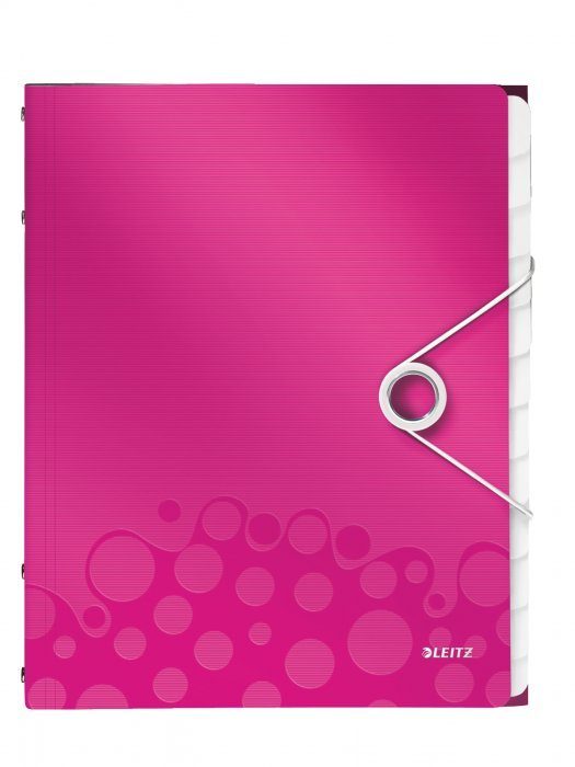 12 przekładek z indeksami ułatwia sortowanie_Ozdobne zamknięcie zabezpiecza dokumenty podczas przenoszenia_Indeksy na przekładkach umożliwiają szybki dostęp do dokumentów_Praktyczne elastyczne zamknięcie zabezpiecza dokumenty podczas przenoszenia_Spis przekładek umieszczony na tylnej klapce umożliwia szybki dostęp do zawartości_Idealna do przechowywania notatek lub dokumentów A4. standardowych teczek oraz folderów CombiFile_Mieści 200 kartek A4 (80 gsm)_Bezkwasowy polipropylen. bezpieczny dla odbitek kserograficznych_Idealnie pasuje do pozostałych produktów z kolekcji WOW. Sprawdzi się zarówno w domu. jak i w biurze.
