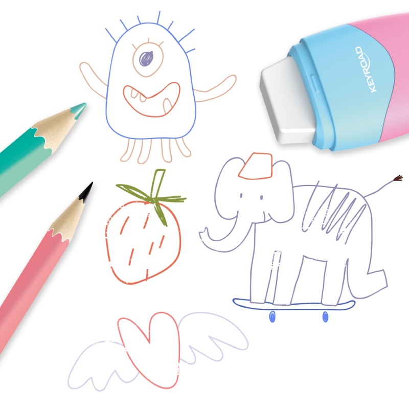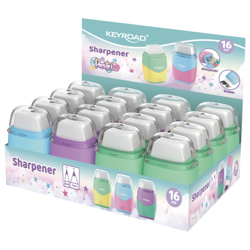 Temperówka plastikowa z gumką KEYROAD, pastel, podwójna, pudełko, mix kolorów