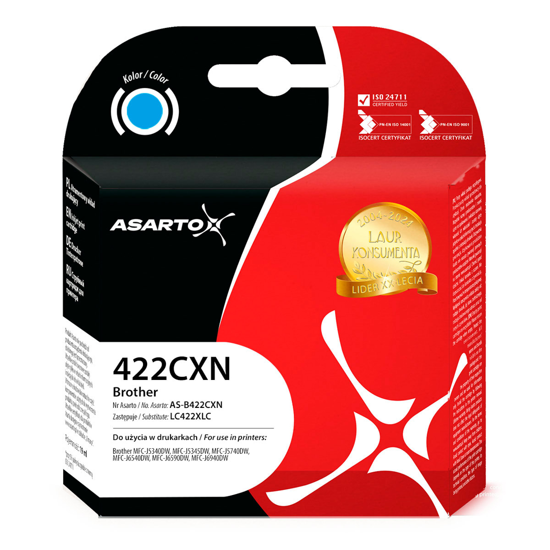 Tusz Asarto do Brother 422CXN | LC422XLC | 1500 str. | 19ml | cyan