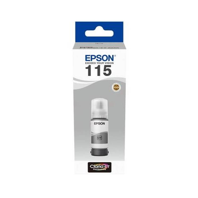 Oryginalny tusz szary (grey) z serii 6-kolorowych wkładów Epson 115 Claria ET Premium przeznaczony do drukarek Epson EcoTank L8160, Epson EcoTank L8180.