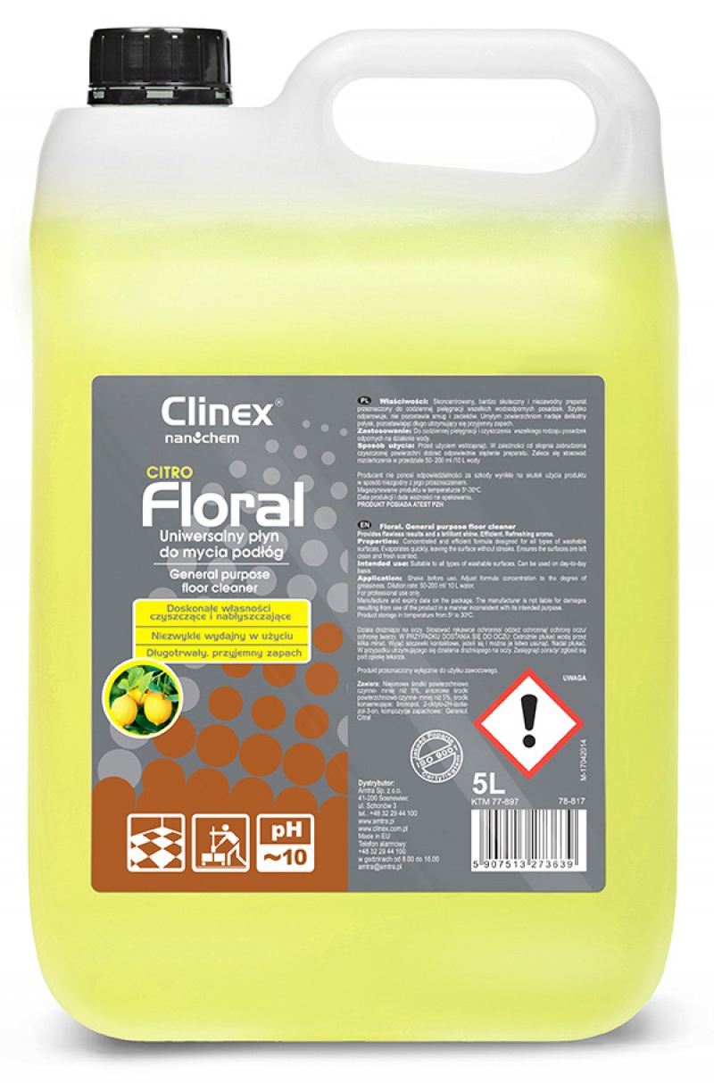 Uniwersalny płyn CLINEX Floral, do mycia podłóg, Citro, 5l