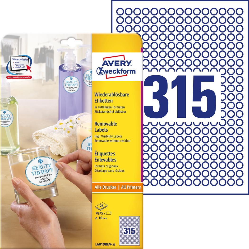 Usuwalne etykiety okrągłe L6019REV-25 10 25ark. Avery Zweckform