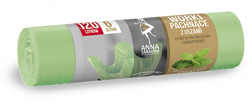Worki na śmieci z uszami ANNA ZARADNA, zapach miętowy, 120 l, 6 szt., miętowy