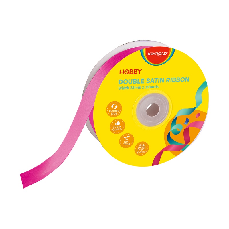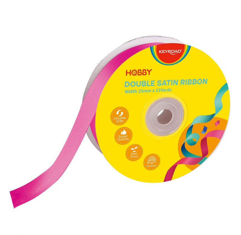 Wstążka KEYROAD, podwójna, satynowa, 25mm x 22,86m, na szpulce, różowa