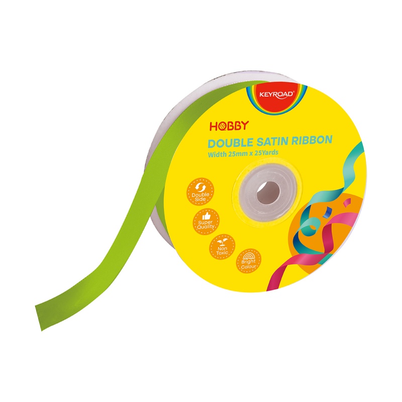 Wstążka KEYROAD, podwójna, satynowa, 25mm x 22,86m, na szpulce, zielona