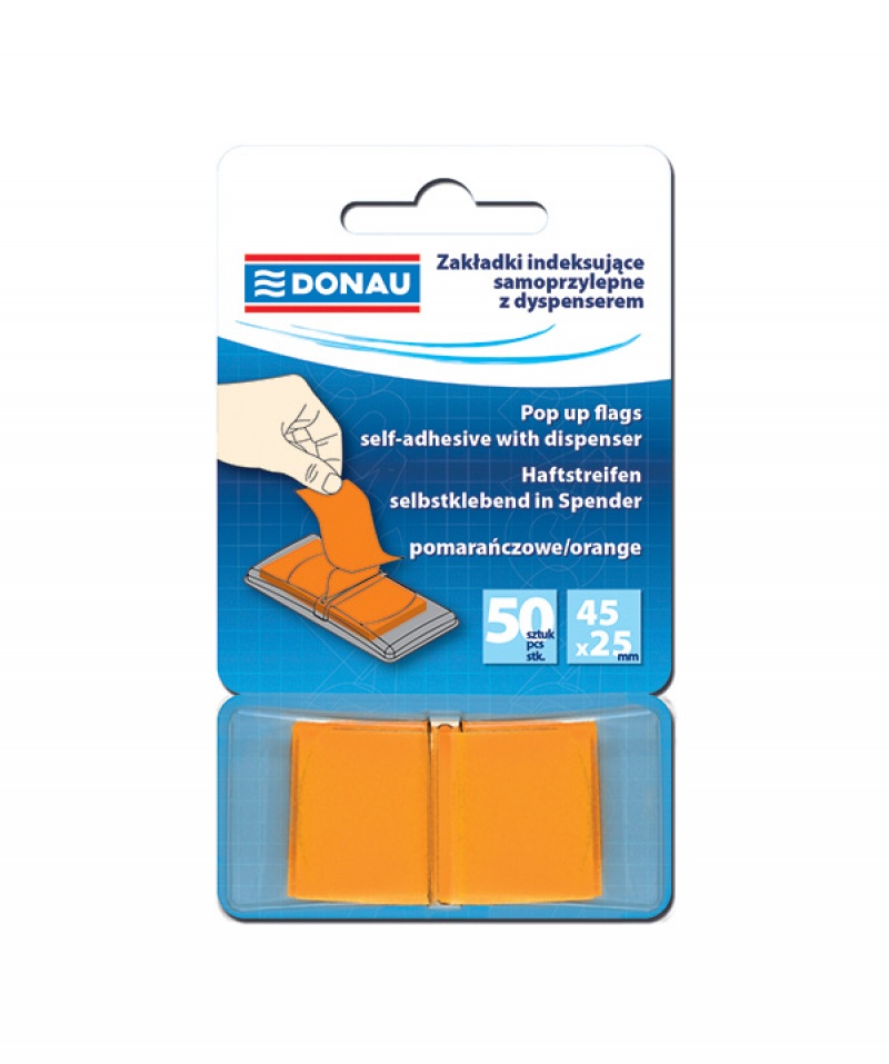 Zakładki indeksujące DONAU, PP, 25x45mm, 1×50 kart., pomarańczowe