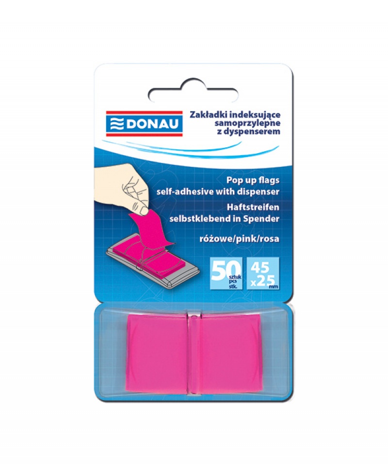 Zakładki indeksujące DONAU, PP, 25x45mm, 1×50 kart., różowe
