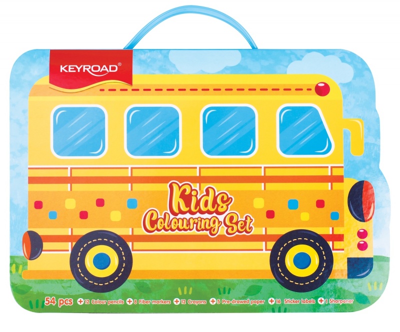 Zestaw artystyczny dla dzieci KEYROAD, 54 elementy, pudełko z rączką, autobus
