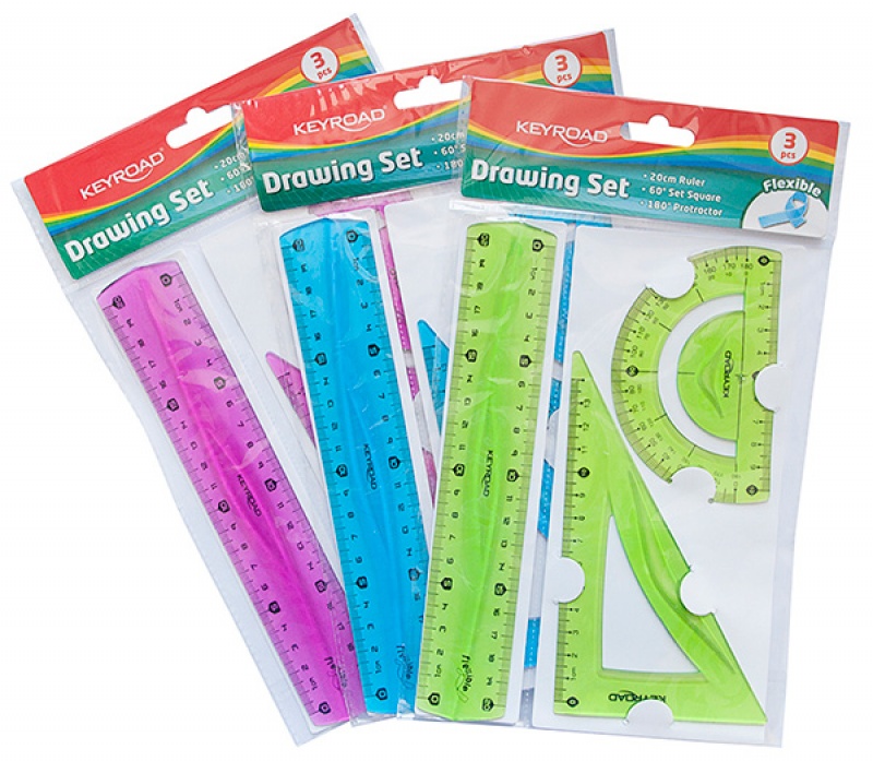 Zestaw geometryczny KEYROAD Flexible średni, z linijką 20cm, zawieszka, mix kolorów